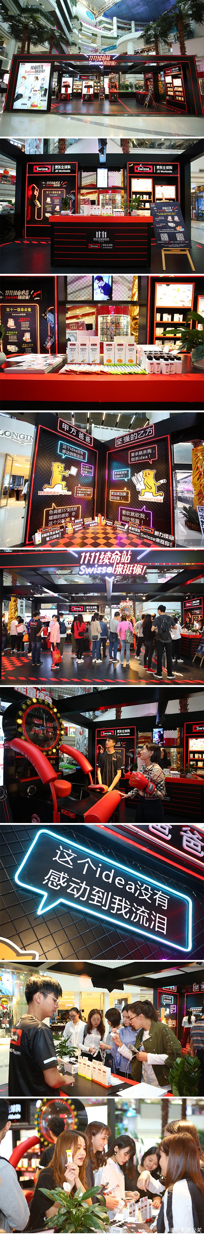 10月16日到10月17日,由廣東豐揚(yáng)天思文化傳播有限公司承辦的為期兩天的“雙11續(xù)命站,Swisse來挺你”活動(dòng)在廣州正佳廣場(chǎng)、杭州城西銀泰展開。“續(xù)命站”設(shè)計(jì)在人群聚集的商圈周邊,通過打造這個(gè)發(fā)泄情緒的通道,讓電商廣告人群在備戰(zhàn)雙十一高強(qiáng)度工作期間,可以忙里偷閑盡情釋放自己的壓力,以此喚起他們對(duì)健康的關(guān)注。